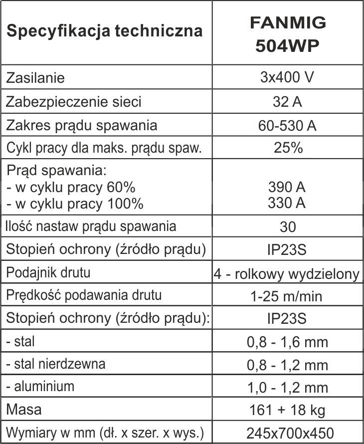 Półautomat Fanmig 504 WP MOST wyposażenie: uchwyt, masa, reduktor Nr index: 59 91 010010 | Id: