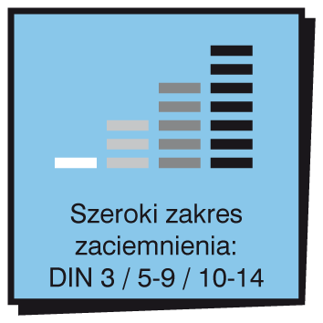 Komfort i bezpieczeństwo w trakcie spawania podnosi zamontowana w komplecie osłona głowy jako ochrona przed odpryskami spawalniczymi i niekorzystnym światłem tylnim.