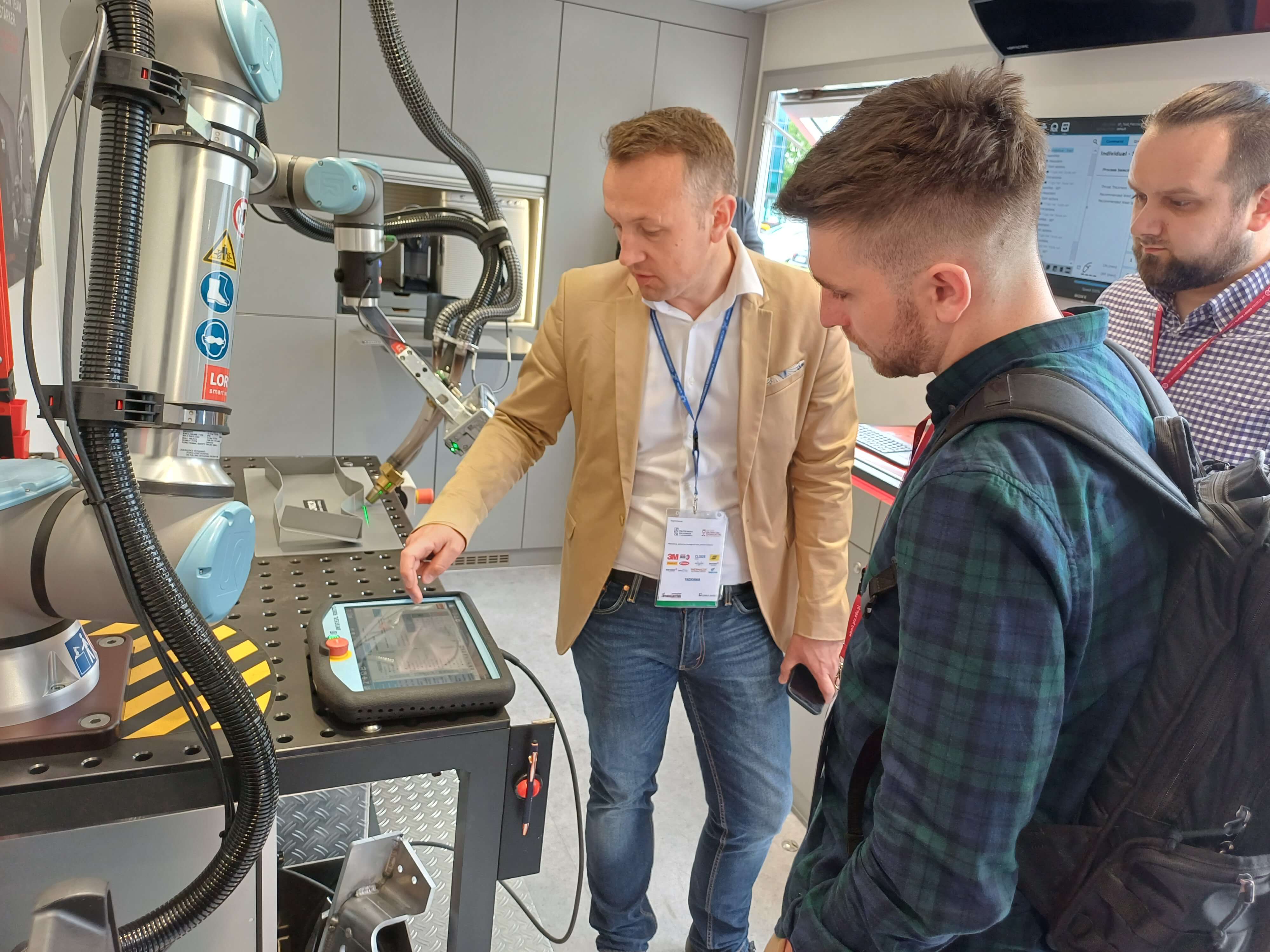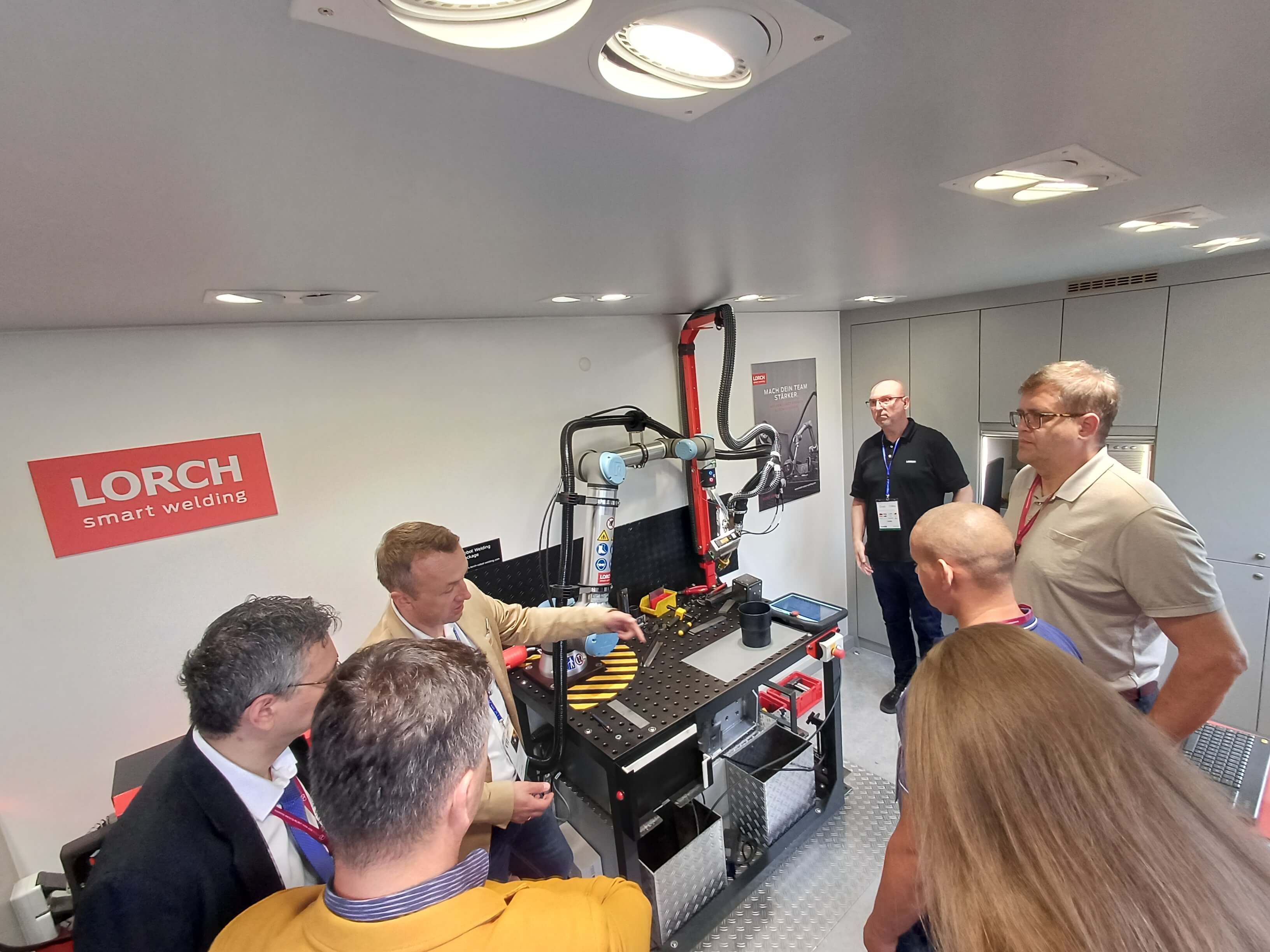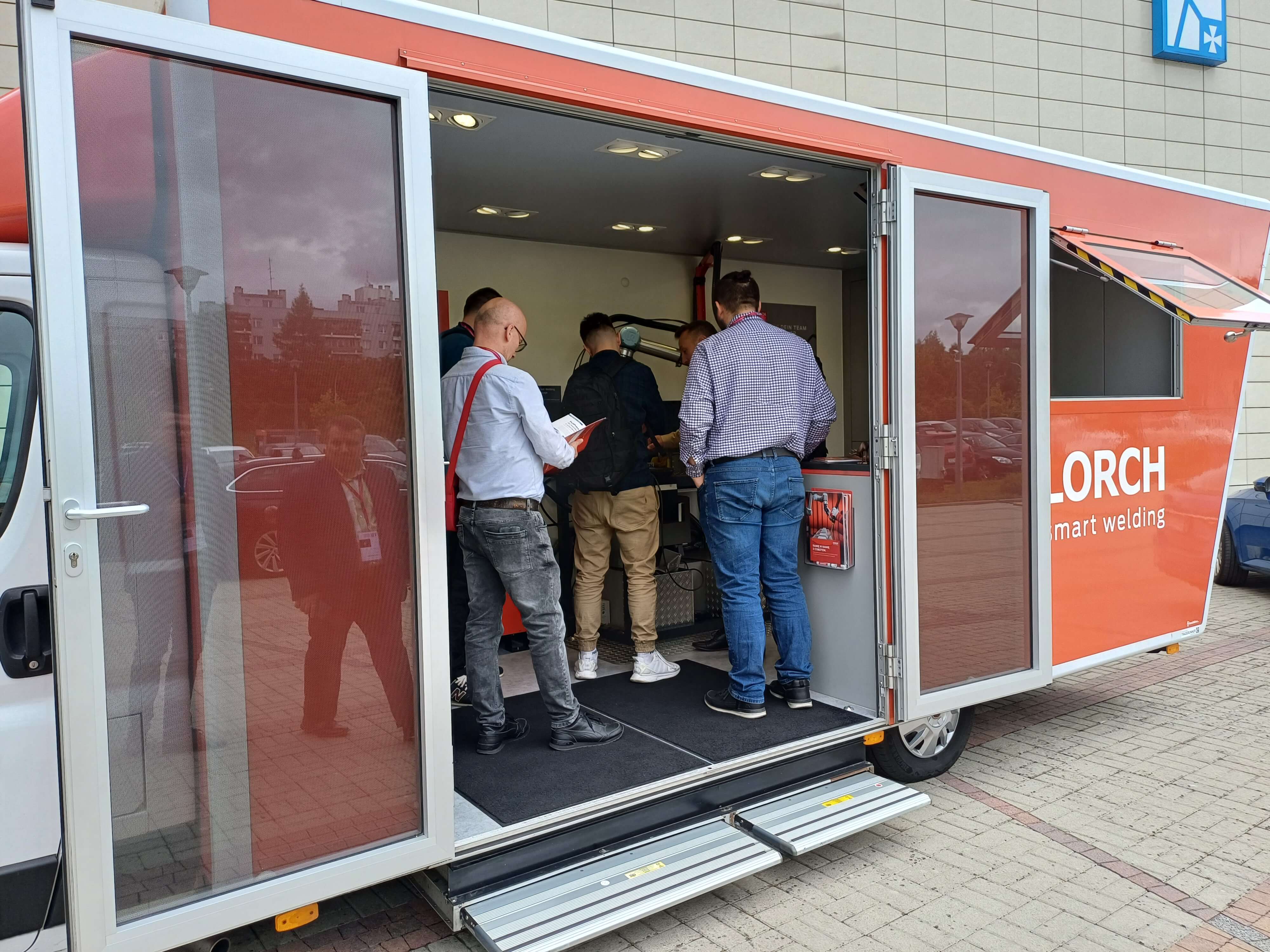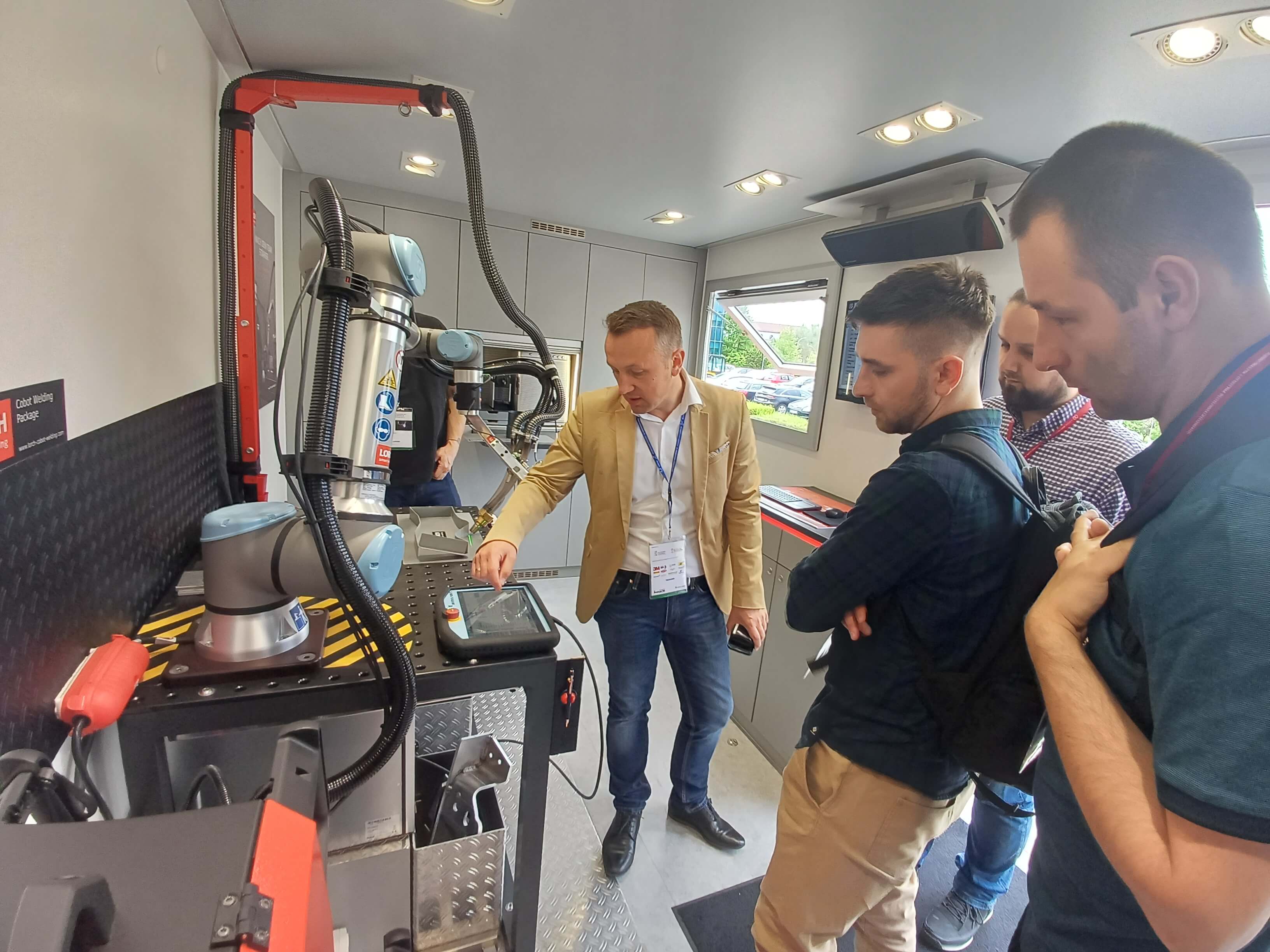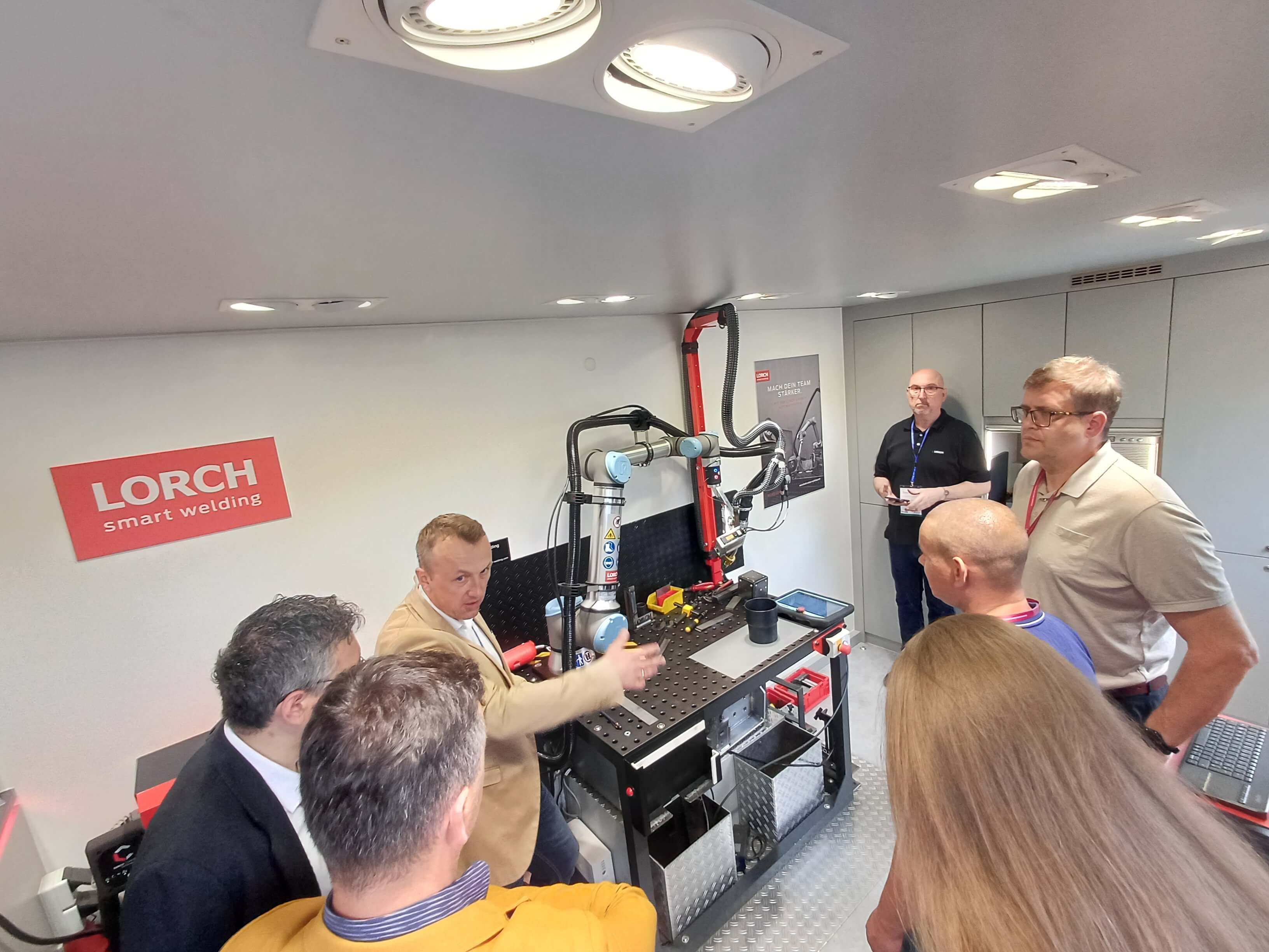 Podczas seminarium mieliśmy okazję zaprezentować omawiane w trakcie prezentacji rozwiązania w naszym mobilnym demobusie, w którym zainstalowaliśmy - robota współpracującego - Cobot Lorch. Uczestnicy mieli okazję zobaczyć go w akcji oraz poznać jego zalety w kontekście zwiększenia efektywności i bezpieczeństwa procesów spawalniczych oraz porozmawiać z naszymi doradcami technicznymi.