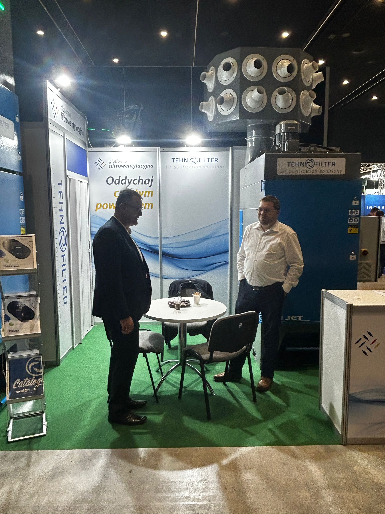 Nie zabrakło także nowości w obszarze systemów filtrowentylacyjnych – na naszym drugim stoisku wspólnie z partnerami z Platformy Filtrowentylacyjnej i firmą Technofilter prezentowaliśmy m.in. kompaktowy, energooszczędny system MAESTRAL oraz nowoczesne urządzenie TEHJET przeznaczone do dużych hal przemysłowych.