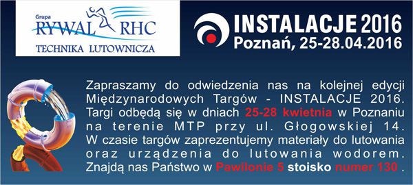 Zapraszamy do odwiedzenia naszego stoiska podczas tegorocznych targów INSTALACJE 2016, które odbędą się w dniach 25-28 kwietnia 2016r. w Poznaniu.