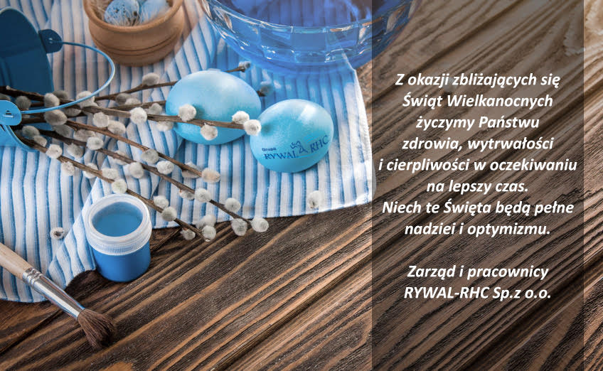 Z okazji zbliżających się Świąt Wielkanocnych życzymy Państwu zdrowia, wytrwałości i cierpliwości w oczekiwaniu na lepszy czas. Niech te Święta będą pełne nadziei i optymizmu - życzą Zarząd i pracownicy RYWAL-RHC Sp. z o.o.