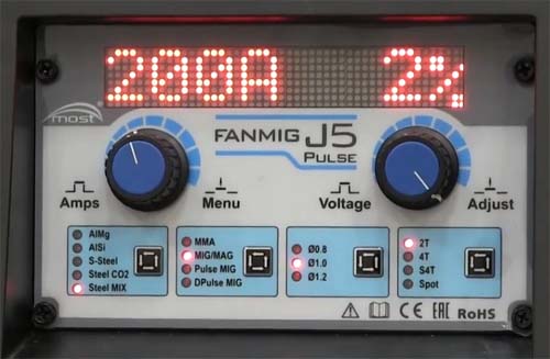 FANMIG J5 Pulse MOST jest nowoczesnym półautomatem spawalniczym do spawania metodą MIG/MAG łukiem zwarciowym i pulsującym (puls lub podwójny puls) a także do spawania elektrodą MMA.