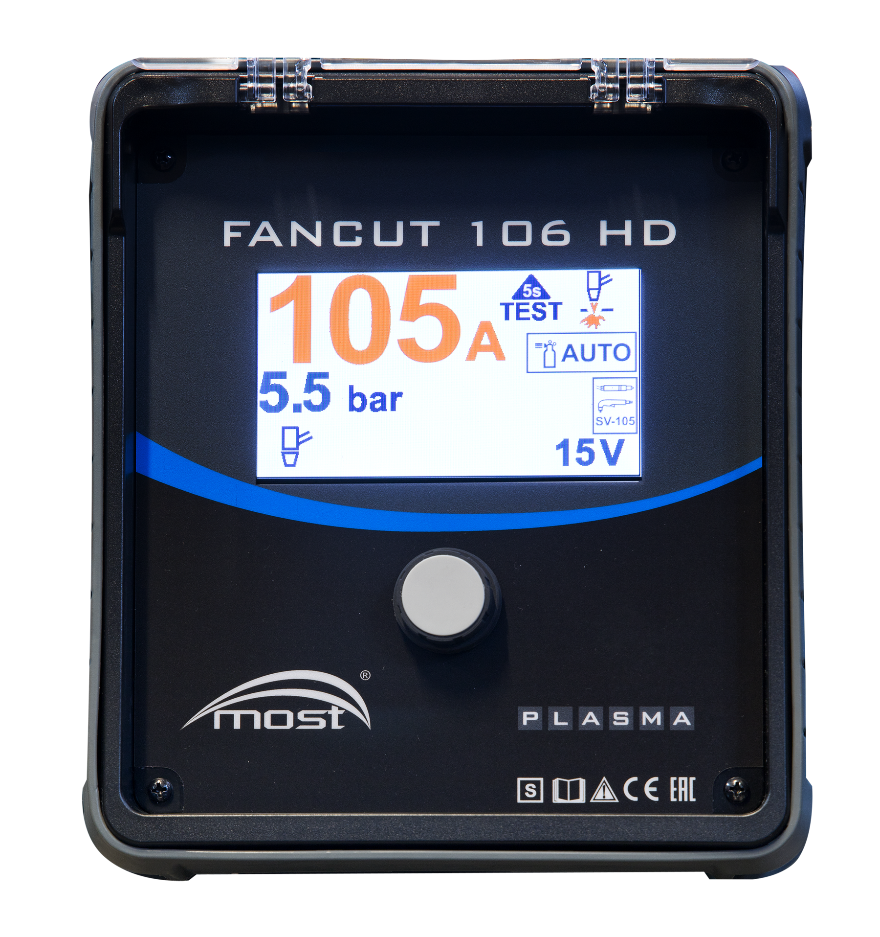 The FANCUT 106 HD device is used for high-quality cutting of metals up to 50 mm thick with a plasma air stream. Process control takes place from a modern panel with a liquid crystal display. In addition to adjusting the cutting current, you can set the operating mode (continuous cutting, grid cutting, or grooving). Also available are brightness adjustment, selection of pressure units, language, and information about the current status of the device. There are two modes for regulating the working pressure.