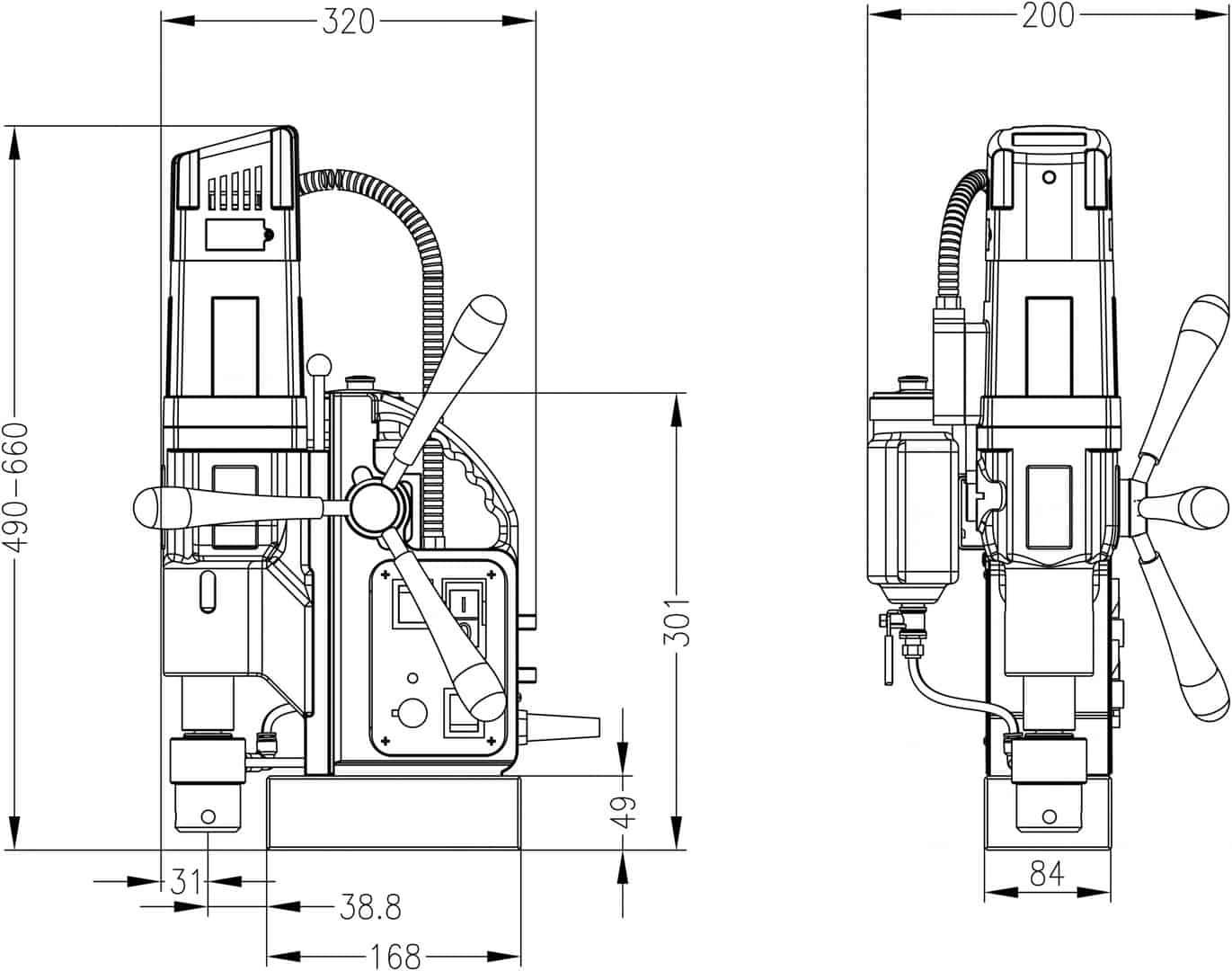 Jedna z najmniejszych wiertarek magnetycznych dostępnych na rynku wyposażona w gniazdo do mocowania narzędzi z tuleją na stożku Morse’a 3: