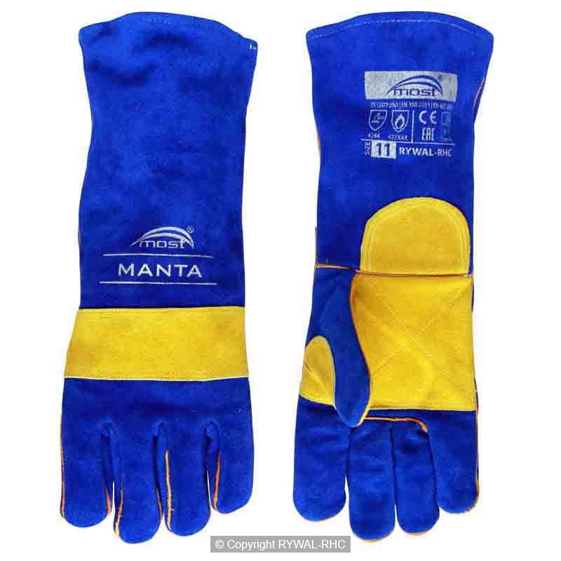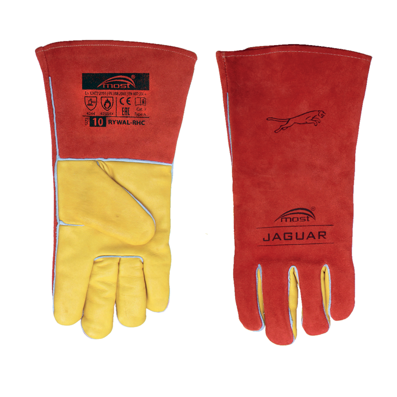 Gloves made of cow skin, pigskin or goat leather provide adequate protection. It is required to cover the glove with non-flammable threads.