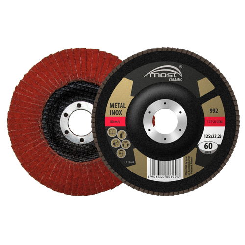 Very rigid cloth with ceramic and corundum grains on polyester backing: