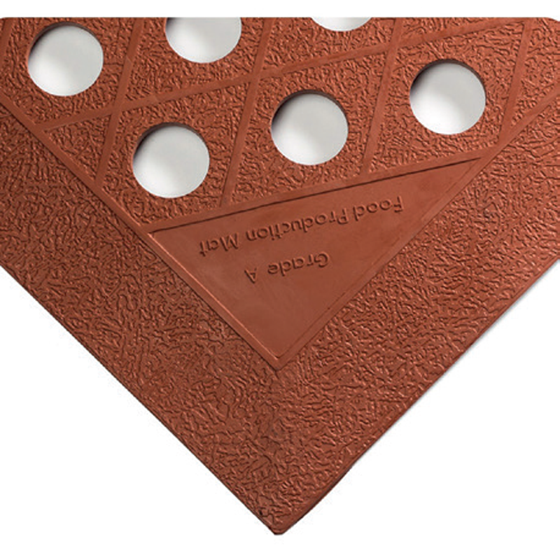 Wearwell's Grade “A” mats are designed to combat fatigue while addressing specific issues unique to food production environments. Its uniquely formulated Nitrile rubber compound is designed to withstand fluids and oils commonly found in food processing environments including vegetable oils, animal fats, citrus, and fish oil. Textured surface increases traction when greasy and wet. Built in handles combined with light weight make it easy to lift and clean. Passes ASTM G21-96 (2002), the test used by NSF to determine resistance to microorganisms and is 100% anti-microbial. ATEST PZH certification.