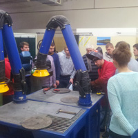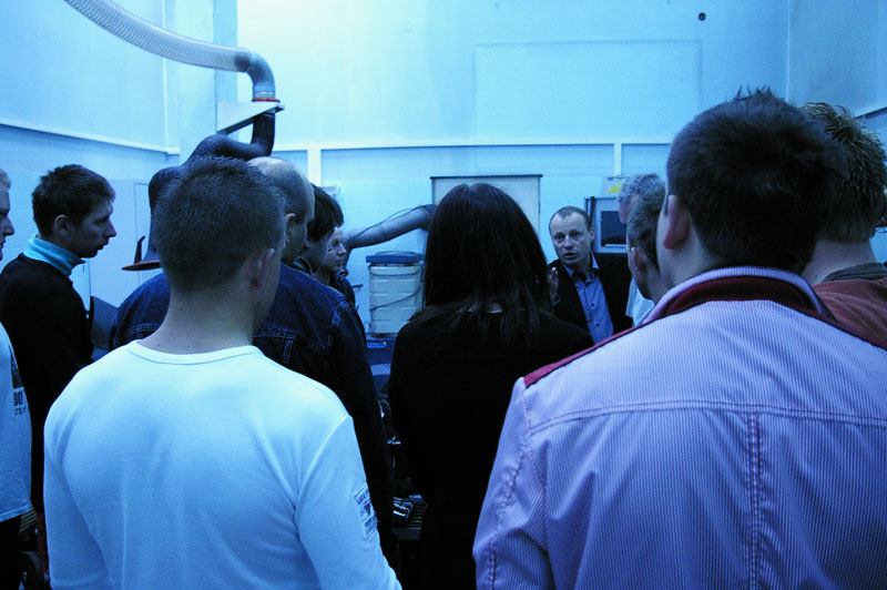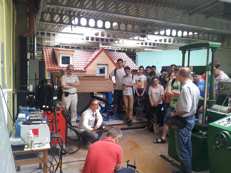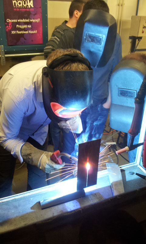 Zostaliśmy zaproszeni do Instytutu Konstrukcji Budowlanych przez prof. dr hab. inż. Macieja Szumigałę i mgr inż. Łukasza Polusa. Pokaz był zorganizowany dla studentów IV roku studiów, którzy zakończyli już zajęcia z projektowania konstrukcji kompozytowych i mieli dzięki nam możliwość zobaczenia całego procesu zgrzewania w praktyce.