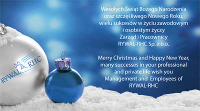 Wesołych Świąt Bożego Narodzenia oraz szczęśliwego Nowego Roku, wielu sukcesów w życiu zawodowym i osobistym życzy Zarząd i Pracownicy RYWAL-RHC Sp.z o.o.