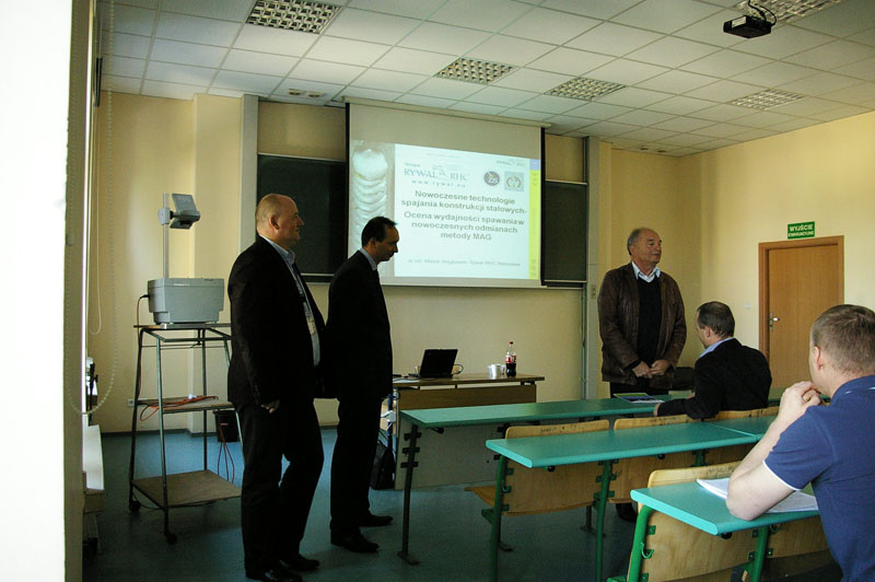 W dniu 25.05.2013. w Zakładzie Spawalnictwa na Wydziale Inżynierii Mechanicznej i Informatyki Politechniki Częstochowskiej odbyło się Spotkanie Spawalnicze. Organizatorem była Politechnika Częstochowska i firma RYWAL-RHC Sp. z o.o. oddział Częstochowa. W czasie spotkania pan dr. Inż. Marek Węglowski wygłosił wykład „Nowoczesne technologie spajania konstrukcji stalowych - Ocena wydajności spawania w nowoczesnych odmianach metody MAG”. Następnie w Laboratorium Spawalnictwa odbyła się prezentacja praktyczna urządzeń spawalniczych marki LORCH, prezentację przeprowadził pan Dariusz Rychlewski. Zaprezentowana tematyka wzbudziła duże zainteresowanie wśród licznych uczestników oraz żywą dyskusję. Spotkanie zostało zorganizowane dzięki uprzejmości pana dr inż. Jan Plewniak - Kierownik Zakładu Spawalnictwa. Pragniemy również podziękować panu dr inż. Robertowi Bęczkowskiemu za czynny udział w zorganizowaniu spotkania.