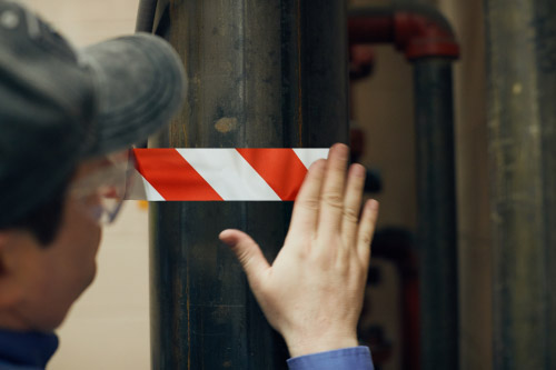 3M™ Uniwersalna taśma ostrzegawcza 767 w kolorze czerwonym i białym jest idealna do oznaczania miejsc, w których znajduje się wyposażenie na hali lub też dla celów ostrzegawczych. Może być również stosowana do znakowania powierzchni w miejscach o małym natężeniu ruchu, a także wokół urządzeń lub wycieków.