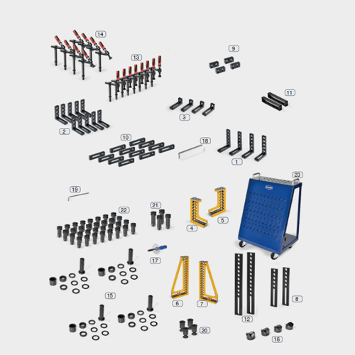 Oprzyrządowanie mocujące DEMMELER jest modułowe i elastyczne oraz kompatybilne. Można je stosować w zakresie wszystkich rozmiarów systemowych, na wszystkich stołach spawalniczych 3D.